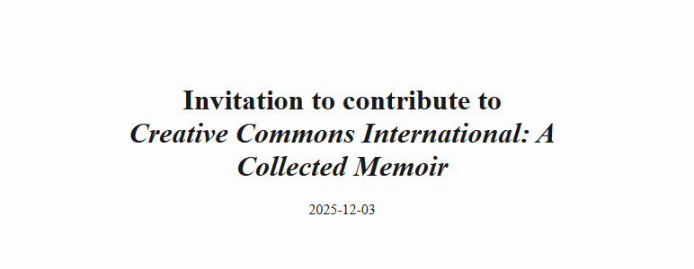 Thư mời đóng góp bài viết ngắn cho ấn phẩm Creative Commons International: A Collected Memoir đang mở — nhóm tuyển hợp tuyển các hồi ký, ký ức và phản ánh cá nhân về thập niên phát triển quốc tế của Creative Commons International (khoảng 2003–2013). Nội dung được chào đón: cách bạn tham gia, […]